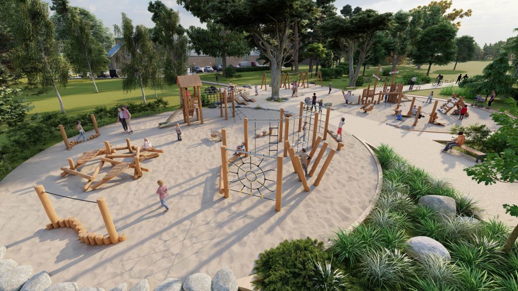Dzieci z niepełnosprawnościami mają szansę uczestniczyć w zabawie — dzięki odpowiednio zaprojektowanym ścieżkom, łagodnym spadkom czy możliwościom interakcji z elementami sensorycznymi. Naturalny plac zabaw to przestrzeń tworzona z myślą o wszystkich. To także idealne miejsce do budowania integracji — dzieci uczą się empatii, wspólnej zabawy i szacunku do innych.