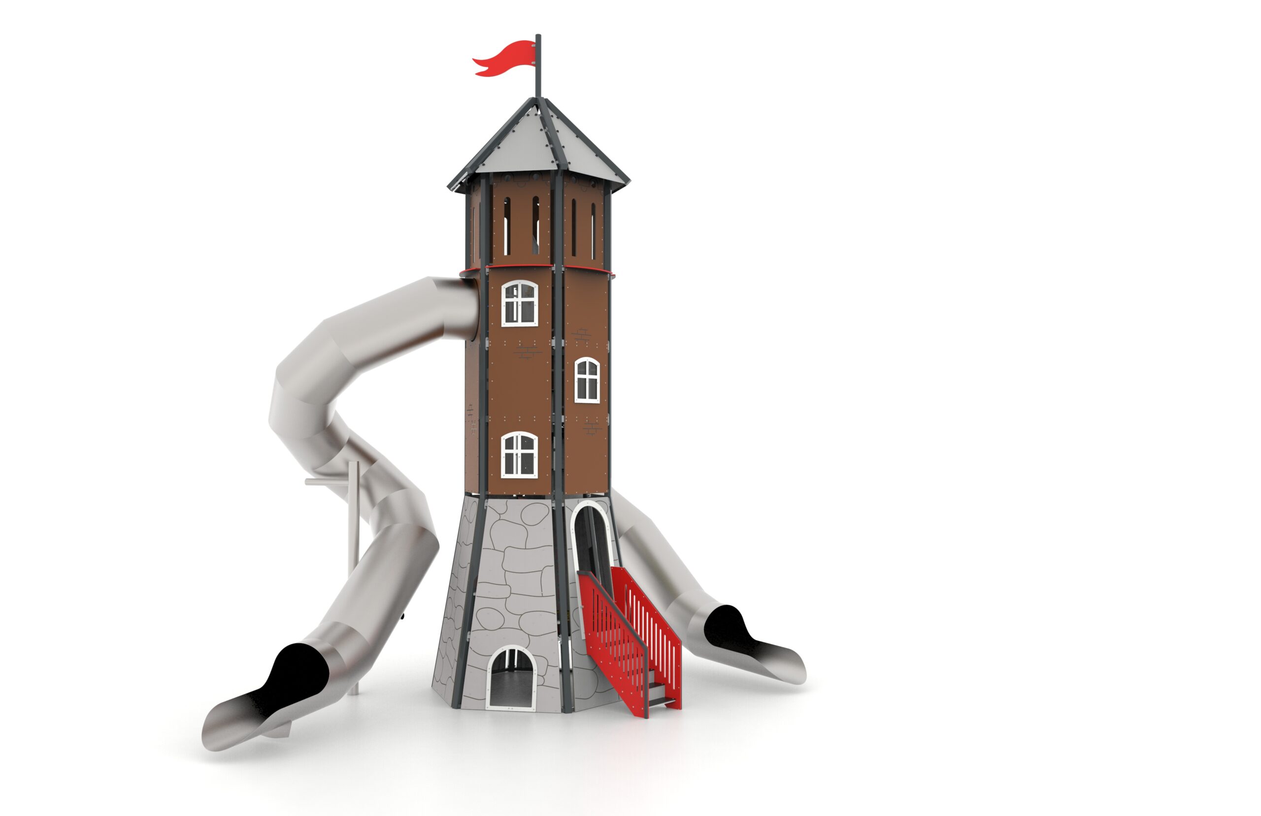Urządzenie w kształcie wieży zbudowane na planie sześcioboku. Dolna część urządzenia zwęża się ku górze. Wyposażona w zewnętrzne schody oraz ściankę wspinaczkową. We wnętrzu w zwężającej się ku górze części są schody spiralne prowadzące do pierwszej zjeżdżalni. Pomiędzy pierwszą i drugą zjeżdżalnią znajdują się spiralnie ułożone platformy i liczne okna. Na szczycie znajduje się punkt widokowy ze zjeżdżalnią i ścianami wykonanymi z poliwęglanu, przykryty sześciospadowym dachem zwieńczonym flagą.