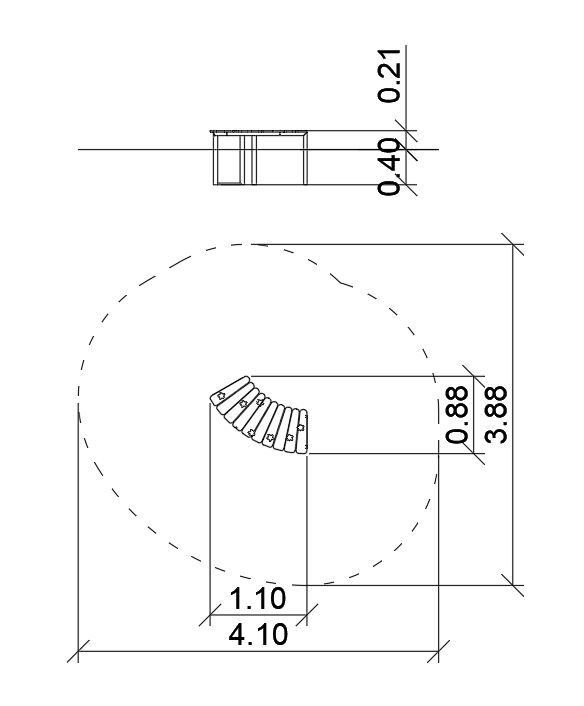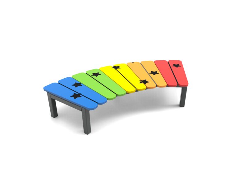 Platforma z różnokolorowego HDPE w formie tęczy, na stalowej ramie.