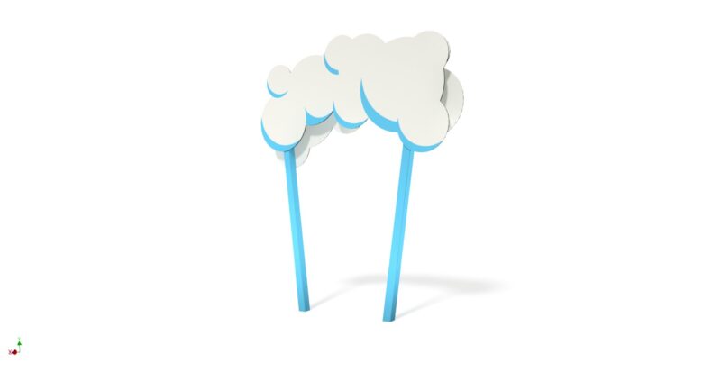Portal z HPL z nadrukiem UV w kształcie chmury, wsparty na stalowych słupach