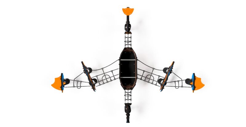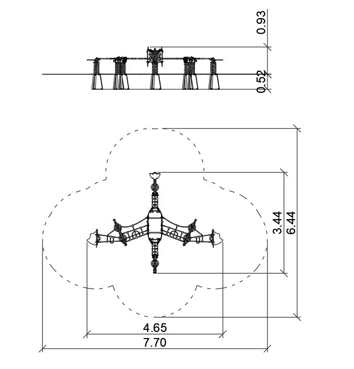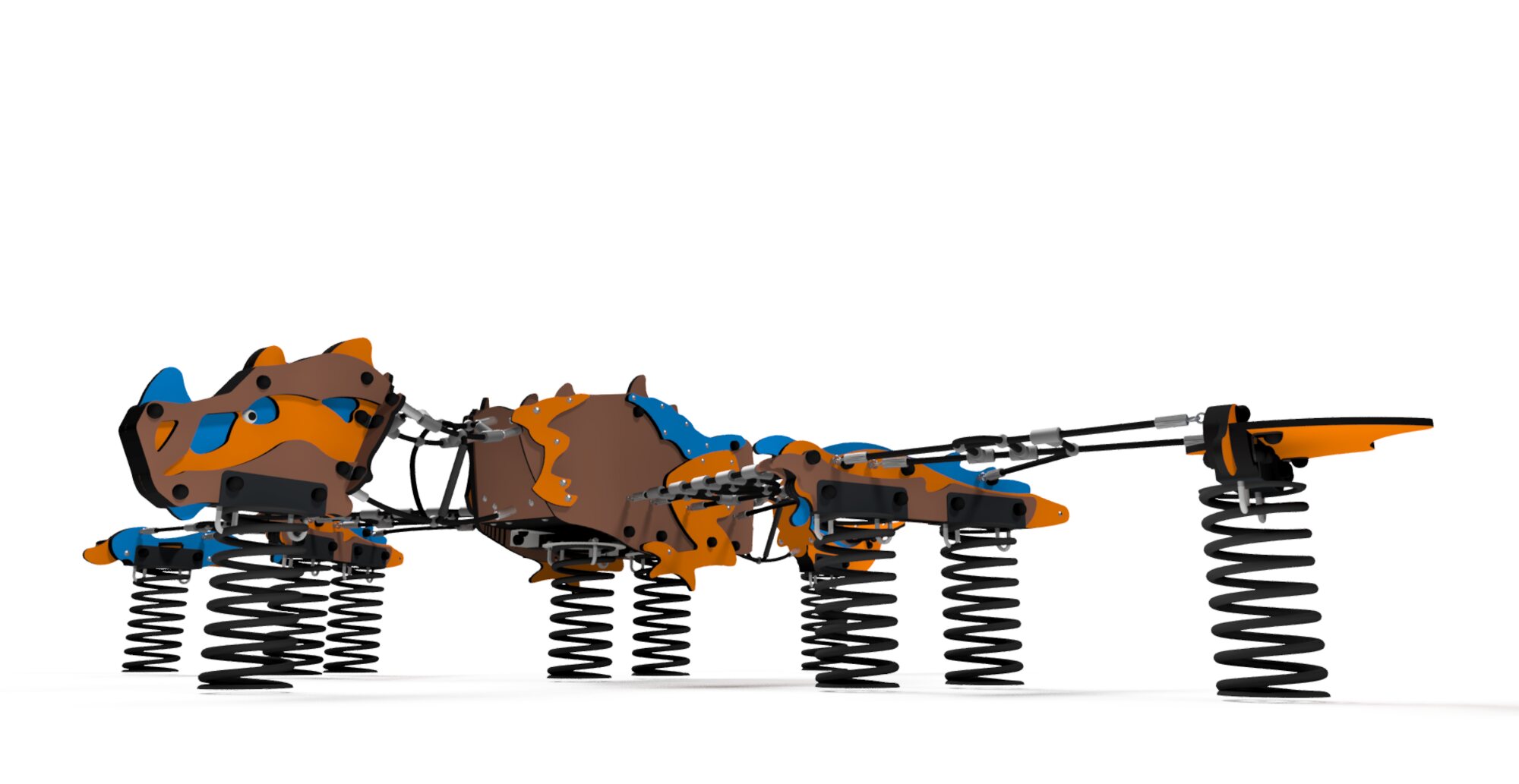Urządzenie w kształcie smoka złożone z 7 modułów posadowionych na sprężynach i połączonych ze sobą linami. Środkowa część wykonana z giętego HDPE.