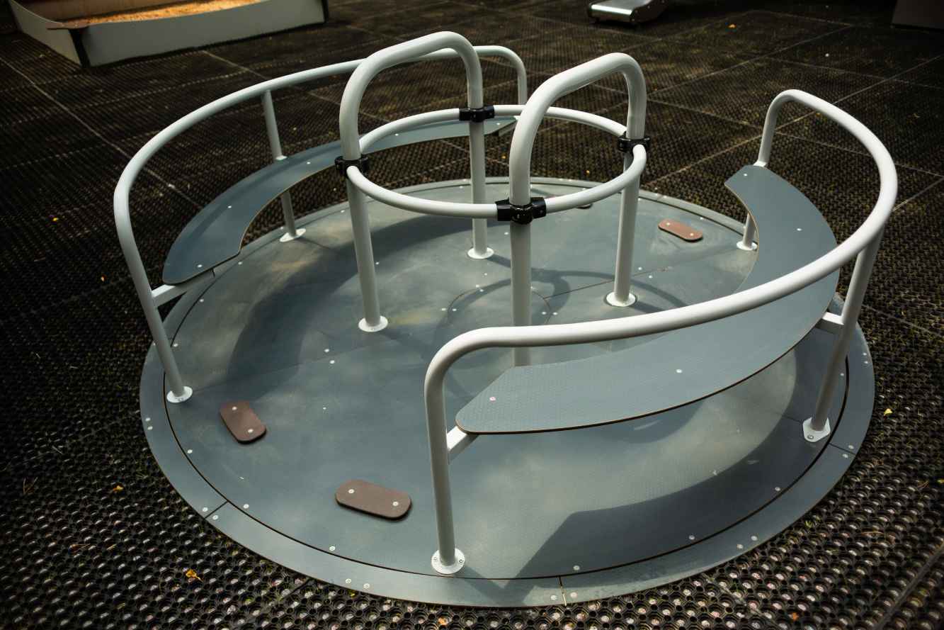 Mechanizm obrotowy bazuje na bezobsługowych łożyskach, przez co nawet najmłodsze dzieci mogą łatwo wprawić karuzelę w ruch. Lekka, ale stabilna konstrukcja zwiększa bezpieczeństwo, a różnorodność kolorów i kształtów sprawia, że karuzele dla dzieci świetnie komponują się z innymi elementami placu zabaw.