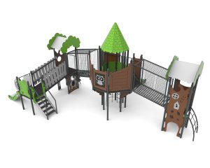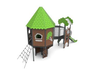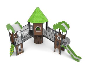 Дети могут свободно исследовать верхушки деревьев и стимулировать свое воображение на игровых площадках, оформленных в лесной тематике. Мы вдохновлялись фортами и коттеджами нашего детства, затем добавили дружелюбных медведей, птиц и улиток. С помощью этих инсталляций дети всех возрастов будут перемещаться по верхушкам деревьев, взбираясь и исследуя выбранную комбинацию платформ, веревочных лестниц, досок для скалолазания, горок, интерактивных панелей и зданий.